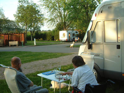 Dinner outside our mobile home/RV in Alsace, Francel
