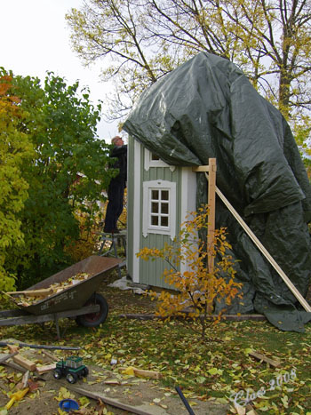 Now the Moomin house has got a nice cover of the roof and fancy fence at the entrance. Photo 3 June 2009. |