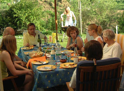 I Gelterkinden var det riktig sommarvärme och solbad i badbyxor. Och när vi kom hem var det +3 grader ute och bara 12,5 inne (svalt inne eftersom jag stängde värmen innan vi for).